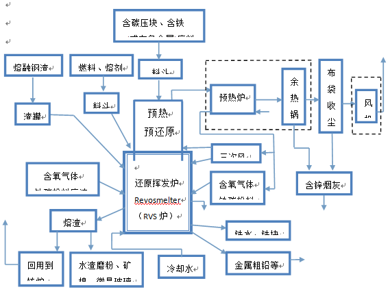 4、转炉熔融钢渣 “三固废”还原挥发协同处理工艺(或称熔融钢渣Mss含碳压块cob冶炼挥发工艺---MSSCOB工艺)