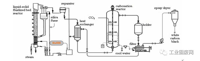 微硅粉活性很高,常压下就可与 NaOH 溶液发生反应生成水玻璃,水玻璃经过电石窑 气碳化,可生成沉淀白炭黑,尾液蒸发结晶可得 Na2CO3 副产品, Na2CO3 副产品经苛化耦 合技术即可制得纳米碳酸钙产品。
