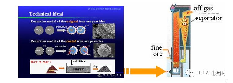 中国的炼铁原料主要是铁精矿粉。传统高炉炼铁-转炉炼钢-钢水精炼-连铸连轧钢铁生 产流程中,铁精矿粉需经烧结造块后才能成为高炉炼铁炉炼,并需焦煤炼焦产生焦炭相配 合。烧结和炼焦的存在,是钢铁生产能耗高和 污染重的主要原因。如果铁精矿粉直接经流态 化还原炼铁,则钢铁生产能耗和污染可显著降 低。但是,流态化炼铁工艺应用的瓶颈问题是 铁矿粉还原到一定程度时容易发生粘结失流,