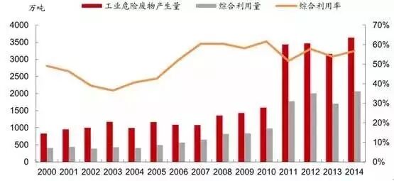 我国危废产量及综合利用情况