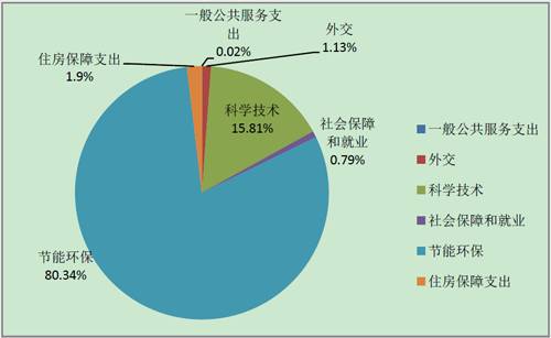 2017年部门预算中,一般公共预算用于以下方面:一般公共服务支出占0.02%;外交(类)支出占1.13%;科学技术(类)支出占15.81%;社会保障和就业(类)支出占0.79%;节能环保(类)支出占80.34%;住房保障支出(类)支出占1.9%。详见下图: